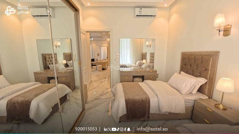 Located in the vibrant Al Wurud neighborhood, this apartment offers a perfect blend of luxury, comfort, and privacy. With a strategic location that provides easy access to all essential services, it’s designed to meet your everyday living needs The apartment features: 2 Bedrooms (1 Master) 3 Bathrooms Spacious living room with a view of the private courtyard Fully equipped kitchen Dining Room Storage Room Private Garage Private outdoor courtyard Private Parking Private entrance Included amenities: Electricity and water bills are covered in the rent 24/7 CCTV surveillance On-site security