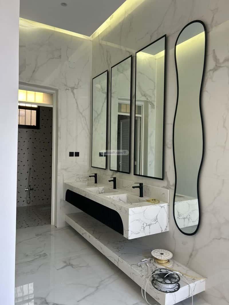 يتكون من اربع غرف نوم ثنتين ماستر +مجلس رجال ومقلط ومجلس نساء +وصالة ومطبخ ومستودع +مشب خارجي + خمس دورات مياه + مدخل سياره+ واجهه حجر مودرن