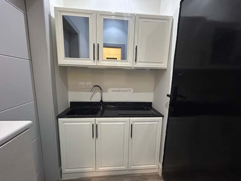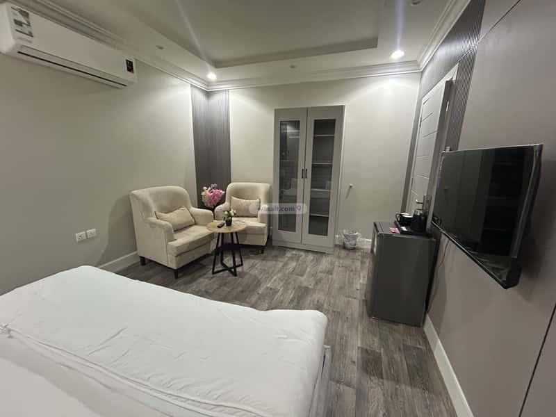 1 - استديو مؤثث بالكامل ( غرفة نوم + تلفزيون + مطبخ صغير مع فرن وثلاجة ومايكرويف+غسالة ملابس+كواية ملابس )