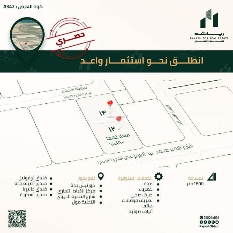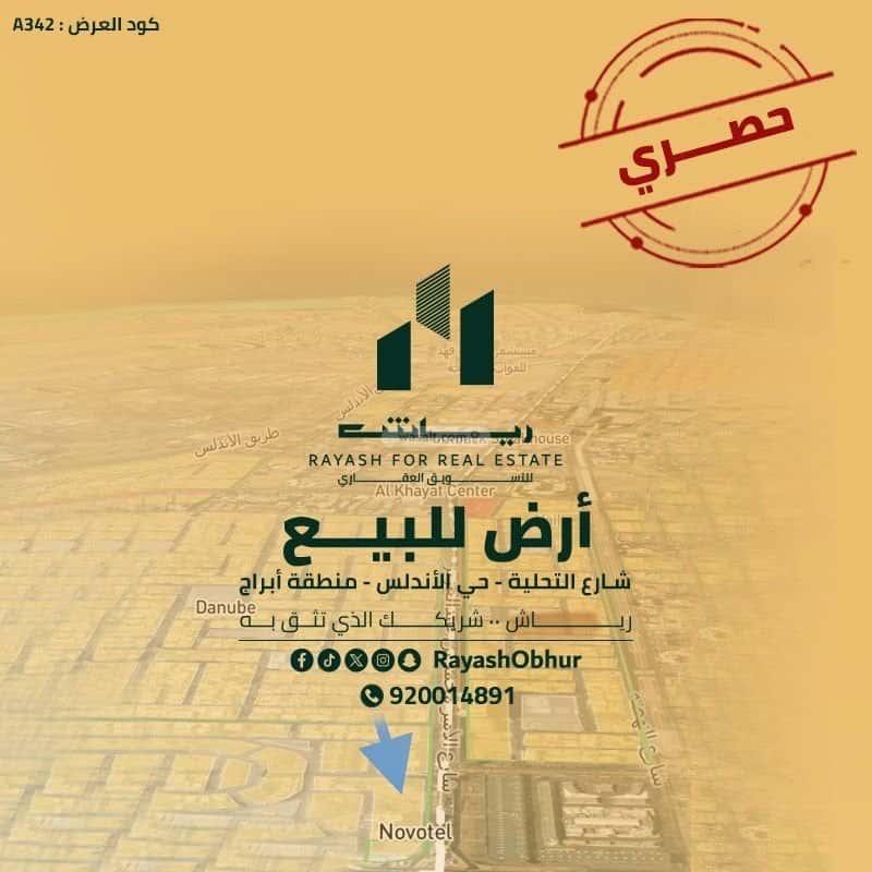 تملك الان أرض تجارية بمنطقه ابراج بمساحة 1800 م² في حي الأندلس – جدة، على شارعين متظاهرين في شارع التحلية، جاهزة لتحويلها إلى مشروعك التجاري أو الفندقي المتميز.