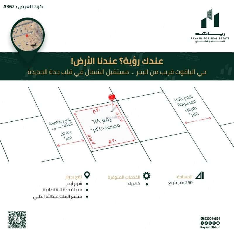 استمتع بمساحة كافية لبناء بيت العمر! أرض 250م² في حي الياقوت، أبحر الشمالية، جدة.