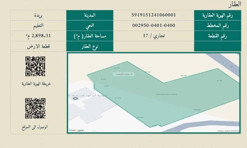 للبيع ارض تجارية فرصة استثمارية بالقصيم بريدة حي التعليم بجانب المستشفى المركزي ( مخطط المحيسني) تقع على طريق الملك عبدالله