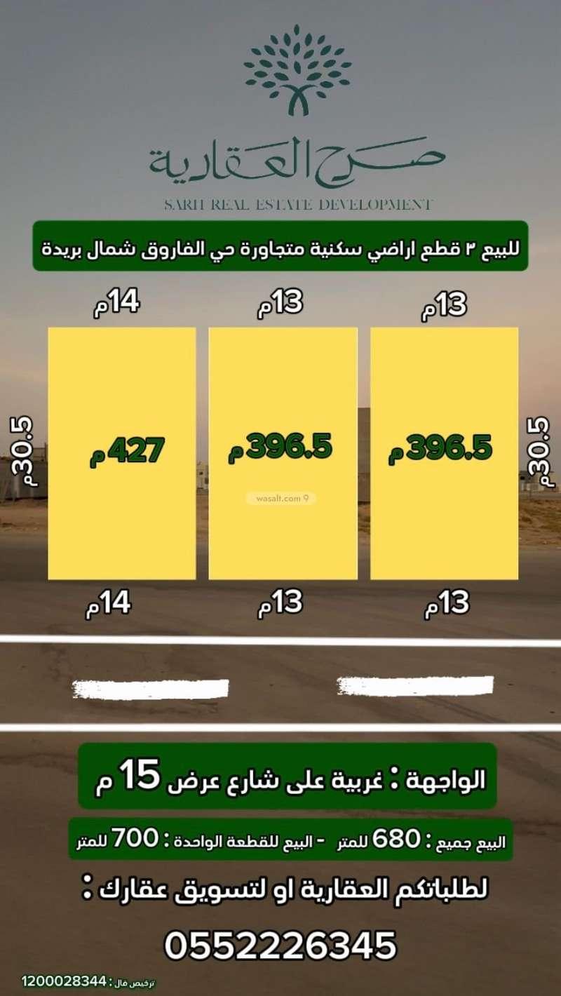 أرض للبيع في حي الإزدهار الفاروق شمال بريدة ٬ بريدة