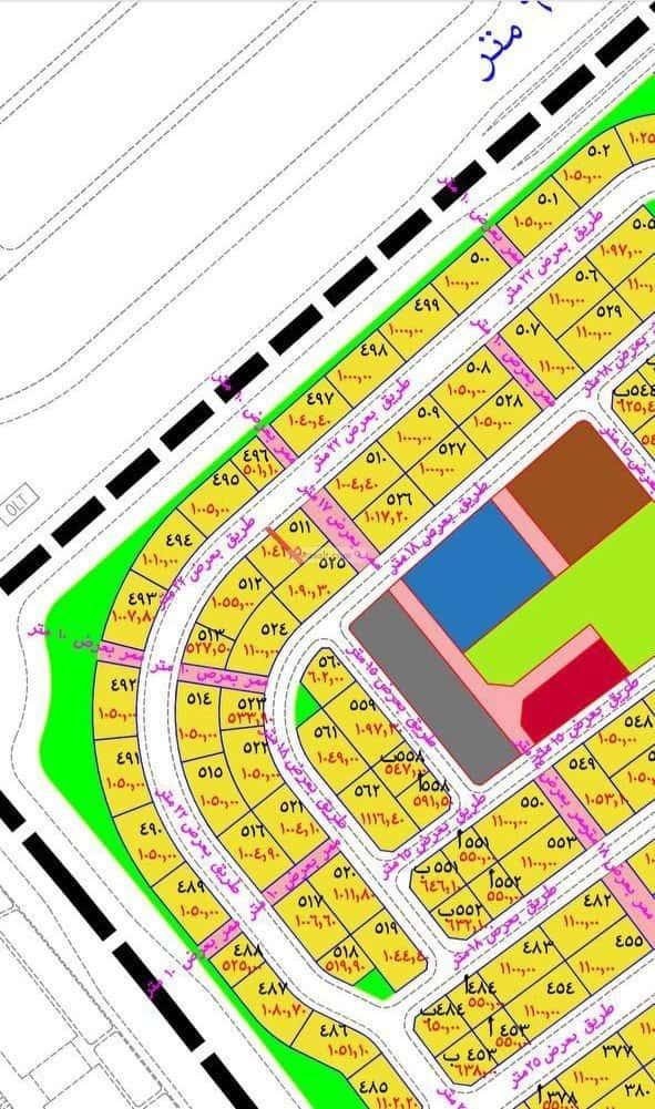 جنوبا : قطعة رقم ٥٢٥ بطول ٢٠ م