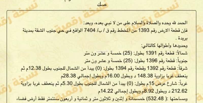 للبيع ارض ببريدة بمخطط حطين المساحة 532 م