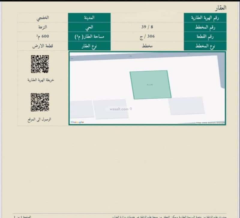 مساحة الأرض 600 متر مربع