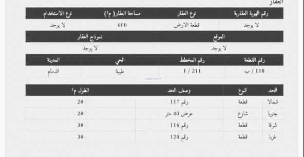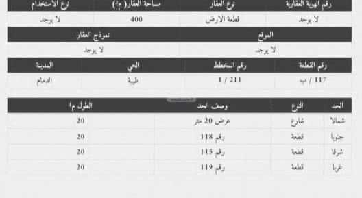 يحدها 1 شارع: جنوبية٬ بعرض 40 م