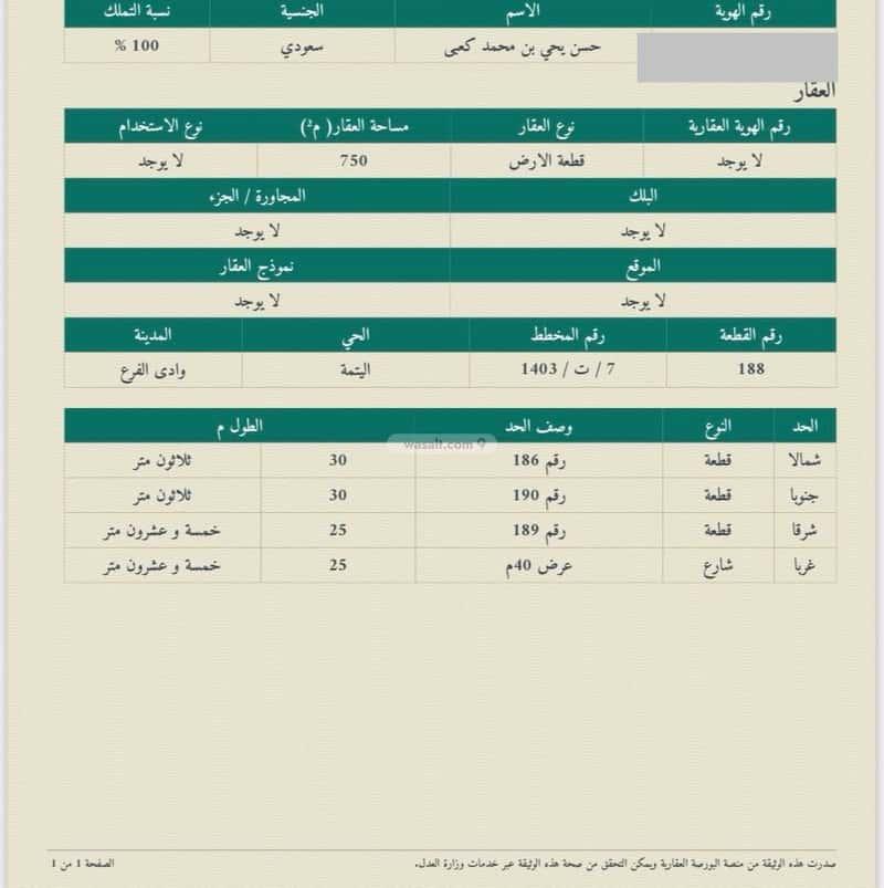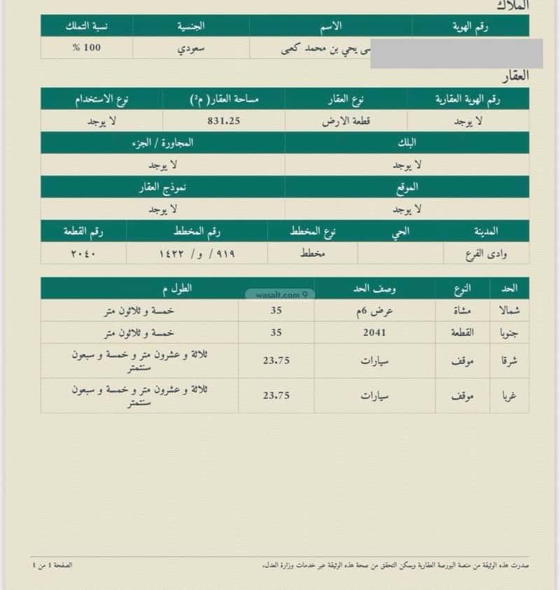 يحدها 1 شارع: شرقية٬ بعرض 20 م