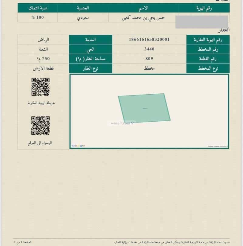 مساحة الأرض 750 متر مربع