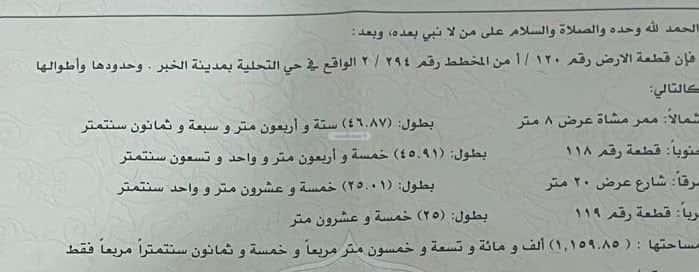مساحة الأرض 1159.85 متر مربع