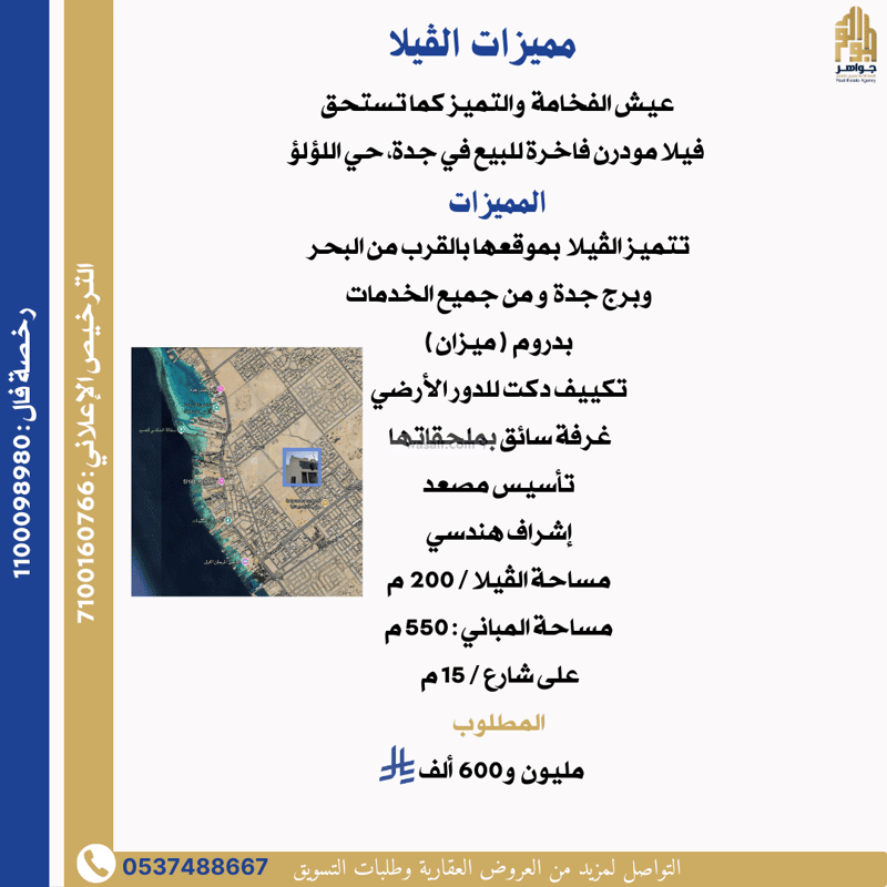 تتميز بموقعها بالقرب من البحر وبرج جدة و من جميع الخدمات