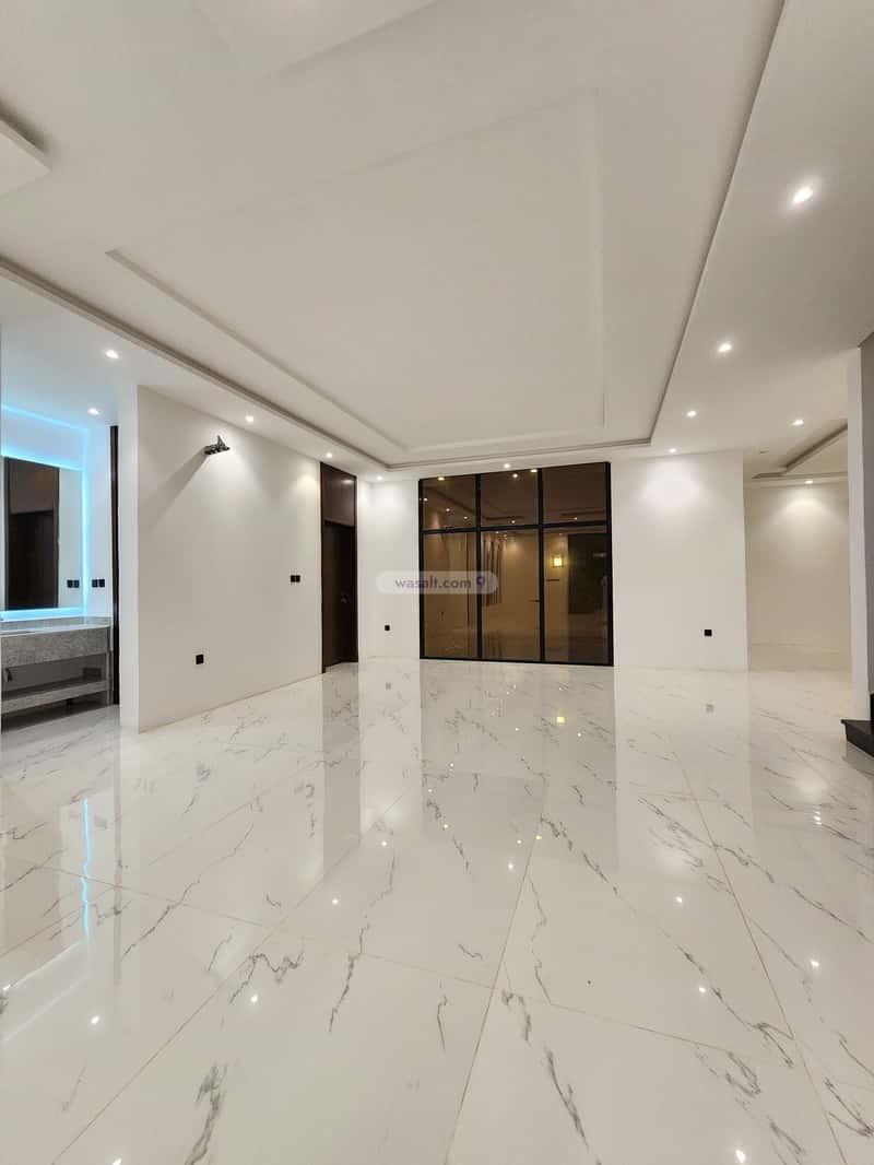 الدور الأول غرفة نوم + غرفة ملابس + ثلاث غرف اخرى + بلكونه جانبيه وثلاث دورات مياه