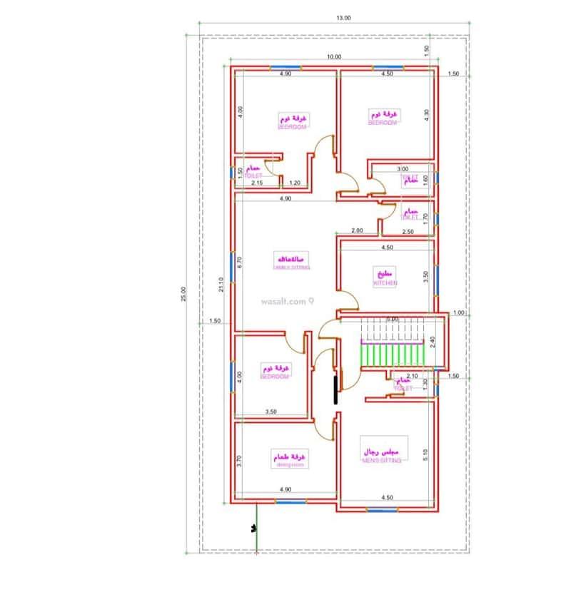 📌 الدور الأول: 3 غرف نوم، مجلس، صالة، مطبخ، غرفة طعام