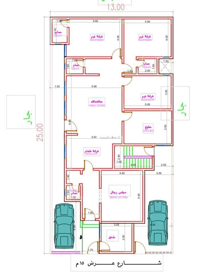 📌 مجلس، مقلط، صالة، مطبخ، 3 غرف نوم بالدور الأرضي (غرفتين ماستر)